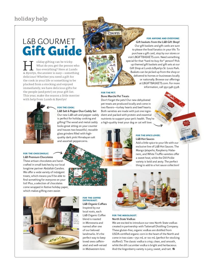 Holiday gifting can be tricky. What do you get the person who has everything? Here at Lunds & Byerlys, the answer is easy – something delicious! Whether you need a gift for the cook in your life or something to be plucked from a stocking and enjoyed immediately, we have delicious gifts for the people (and pets!) on your gift list. This year, make the season a little merrier with help from Lunds & Byerlys!